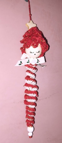 | Chenille | Chenille | Chenille à suspendre Coton rouge / blanc/ doré Perles bois Hauteur 20 cm | 6,00 € l'unité | 1 produit en stock | |